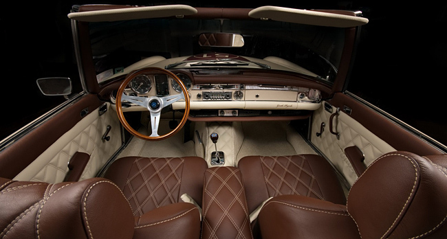 Vilner Studio, una firma búlgara especializada en diseño de interiores de la que ya hemos hablado en alguna ocasión, ha realizado un trabajo muy especial para un cliente que quería ver restaurado su Mercedes-Benz SL Roadster de la década de los sesenta, también llamado comunmente “Pagoda” por la forma cóncava de su techo.