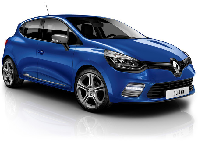 Sus paragolpes son específicos, y en el frontal monta luces de ledes, mientras que en la trasera apreciamos un nuevo difusor y una doble salida de escape cromada. En los laterales destacan las llantas de 17 pulgadas sobre un fondo de color Azul Malta que es exclusivo de esta versión. En el interior, incorpora R-Link con R.S. Monitor 2.0, tarjeta manos libres, radio Bluetooth con puerto USB, radar de proximidad con cámara, y la tapicería es específica del Clio GT.