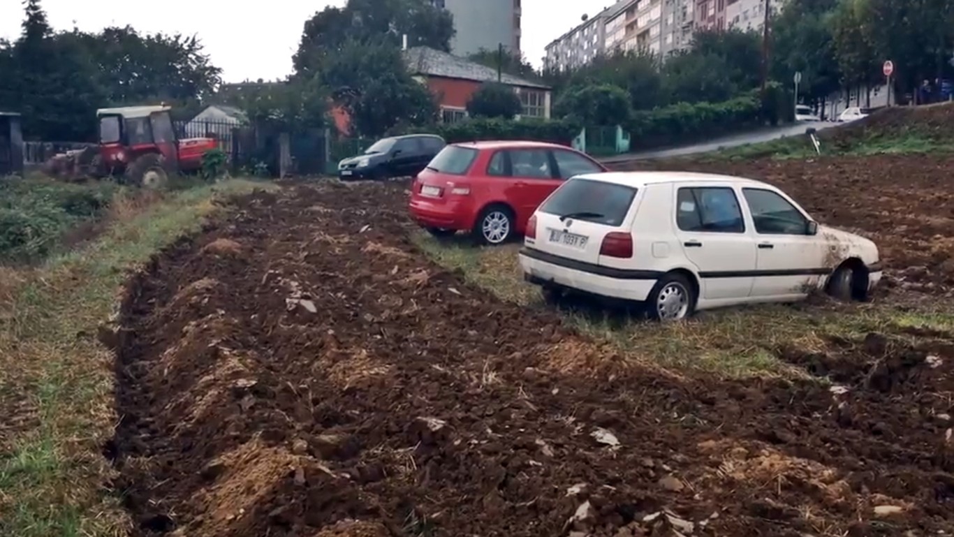 De los tres coches aparcados, dos estaban allí por dejadez de sus propietarios. El Renault Clio estaba aparcado cerca de la calle y pudo salir sin dificultad, el Fiat Stilo tuvo que esmerarse para cruzar el terreno arado y el Volkswagen Golf seguramente tuvo que pedir ayuda porque su dueño lo dejó allí por haber quedado atrapado por el barro en un intento previo a la visita del tractorista.