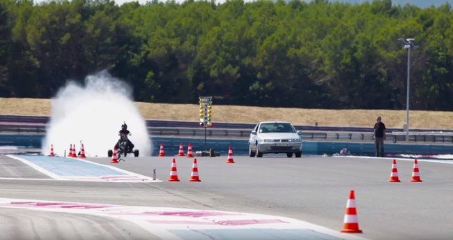 Esta no es la primera vez que hablamos de François Gissy en Motorpasión. Anteriormente había creado una bicicleta que armada con un cohete a reacción, se enfrentó a todo un Ferrari F430 Scudería y alcanzó una velocidad de 333 km/h.
