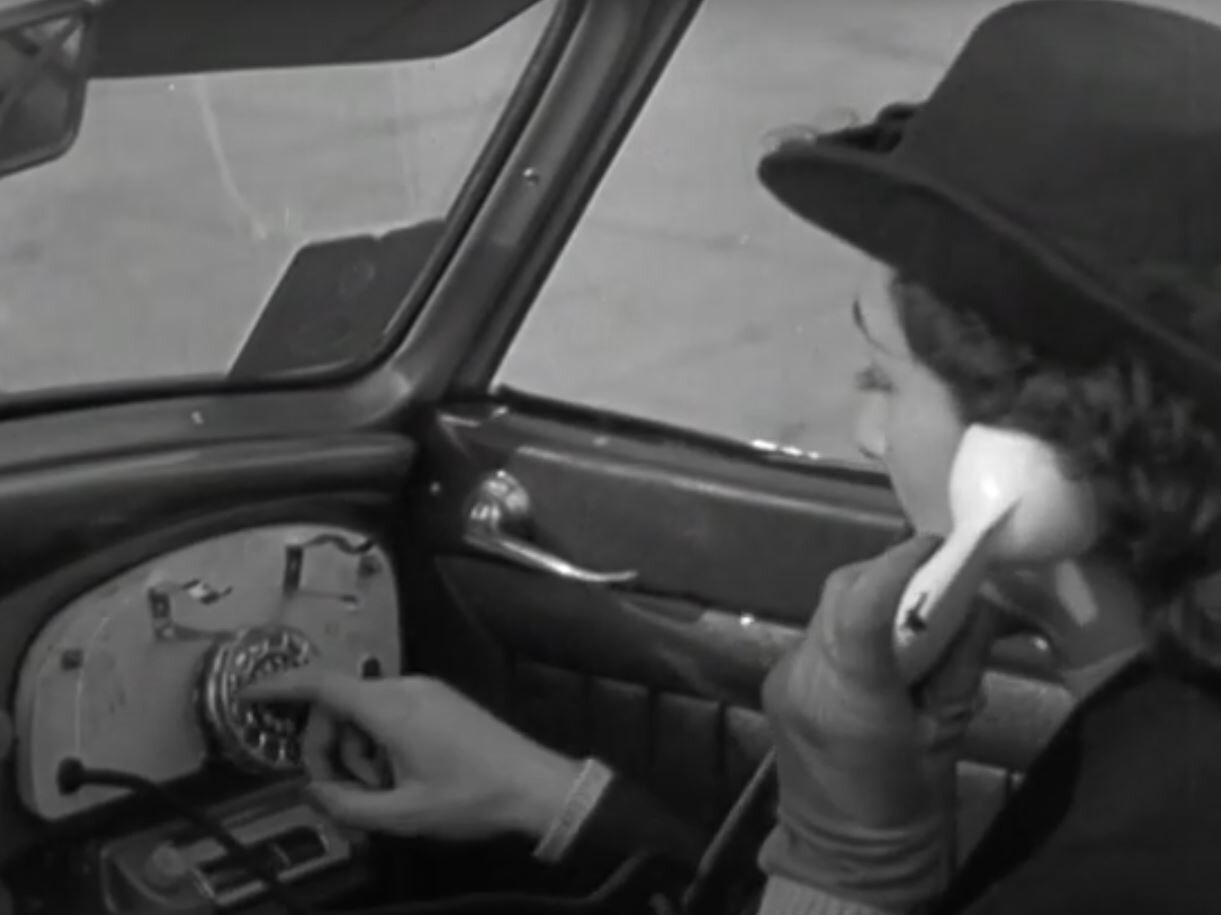 Las imágenes de 'British Pathé', recuperadas en redes sociales, muestran una escena tan extraña como fascinante: un coche se detiene junto a la acera en Nápoles, una mujer baja, conecta un auricular con cable a un punto de acceso telefónico, regresa al vehículo y realiza una llamada sin moverse del asiento.