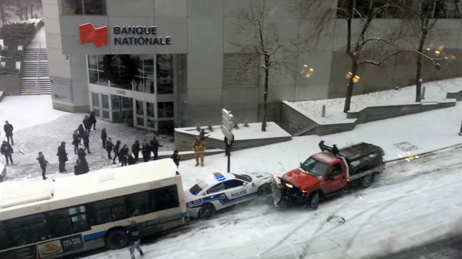 Lo que nos pilla algo por sorpresa es lo que ocurrió ayer en Montreal, Canadá, donde un trabajador de nombre Willem Shepherd grabó estas imágenes sobre las 10 de la mañana frente a su oficina, tras una fuerte nevada. Según Shepherd no hubo heridos de gravedad, pero sí destrozos importantes a diferentes vehículos, incluídos autobuses de la ciudad, un coche de policía o el propio quitanieves.