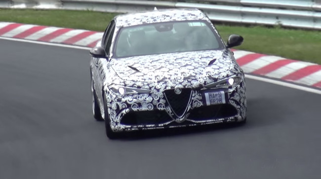 Alfa Romeo ya nos ha contado mucho acerca del Giulia, pero parece que aún hay ciertas tuercas por ajustar. Bajo un absurdo camuflaje —vamos, que tú y yo y China entera sabemos cómo es el nuevo Giulia— el sedán italiano ha sido captado dejándose los neumáticos sobre el asfalto de Nürburgring y haciendo ronronear su V6 turbo de 510 CV.
