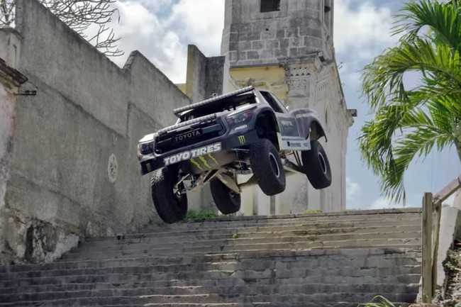 Puede que BJ Baldwin sea la versión offroad de Ken Block. Ambos comparten patrocinadores y, cómo no, un formato de vídeos ligeramente similar. Con las Gymkhanas perdiendo frescura en cada nueva edición, Baldwin nos presenta un soplo de aire tórrido manando del V8 de su pick up Toyota que no está nada mal para ir pensando en el fin de semana.