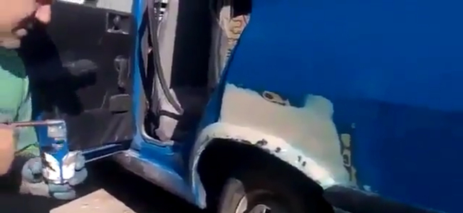 El autor del texto que acompaña a este vídeo no asegura que soplar pintura a través de un canutillo vaya a dejar la carrocería de su coche impecable y además reconoce que esta actividad es altamente peligrosa e incompatible con un estado de salud aceptable. Para más información, consulte a su médico. Y, por el amor de dios, ¡no intenten hacerlo en sus casas!