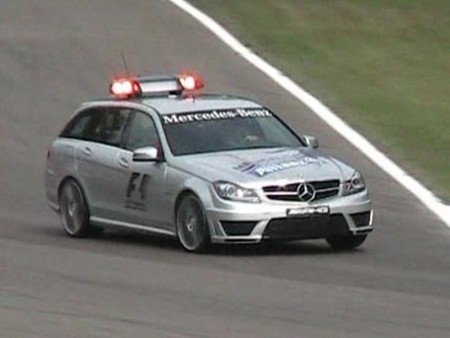 El F-1 Medical Car no es otro que un Mercedes-Benz C63 AMG Estate, familiar, que monta un 6.3 litros V8 que suena a gloria. Produce una potencia de 487 CV a 6.800 vueltas y es capaz de acelerar de 0 a 100 km/h en 4,4 segundos.