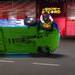 Es entonces cuando el acróbata en el asiento del copiloto sale por la ventanilla y toma posición colgado de la aleta delantera derecha y apoyado sobre el capó. Desde ahí tiene visión suficiente de la rueda (que incorpora un asa soldada a la llanta) y los tornillos.