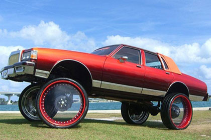 Hagamos una mezcla explosiva. Por un lado, un Chevrolet Caprice de 1985, por otro, unas enormes llantas transparentes de 30 pulgadas, y por medio, una suspensión suplementada para darle una altura libre de 50,8 centímetros.