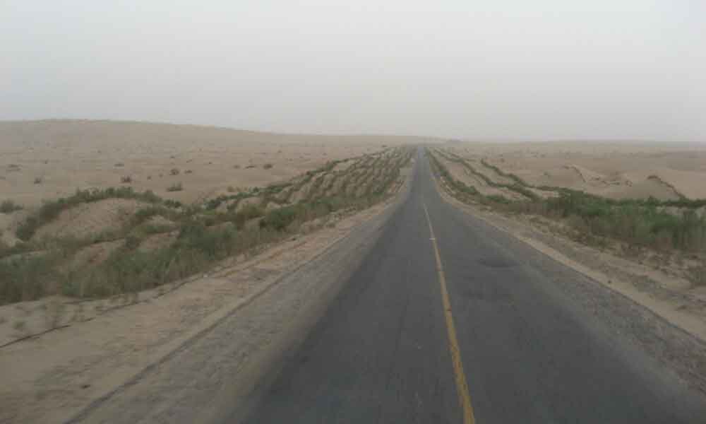 Esta "muralla" china vegetal tiene un propósito: que esta autopista no quede enterrada bajo la arena. Toda una obra de ingeniería biológica que lleva años protegiendo su asfalto y permitiendo que siga siendo practicable.