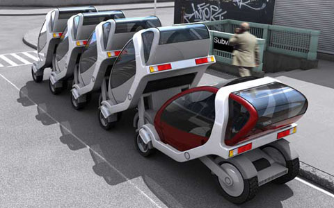 Se trata de un proyecto en el que trabaja General Motors con el MIT, con una concepción basada en el principio de los carritos de la compra o del aeropuerto. Son vehículos urbanos eléctricos que pueden transportar a dos personas, que se encontrarían apilados en lugares concretos y cargándose mientras no se usan.