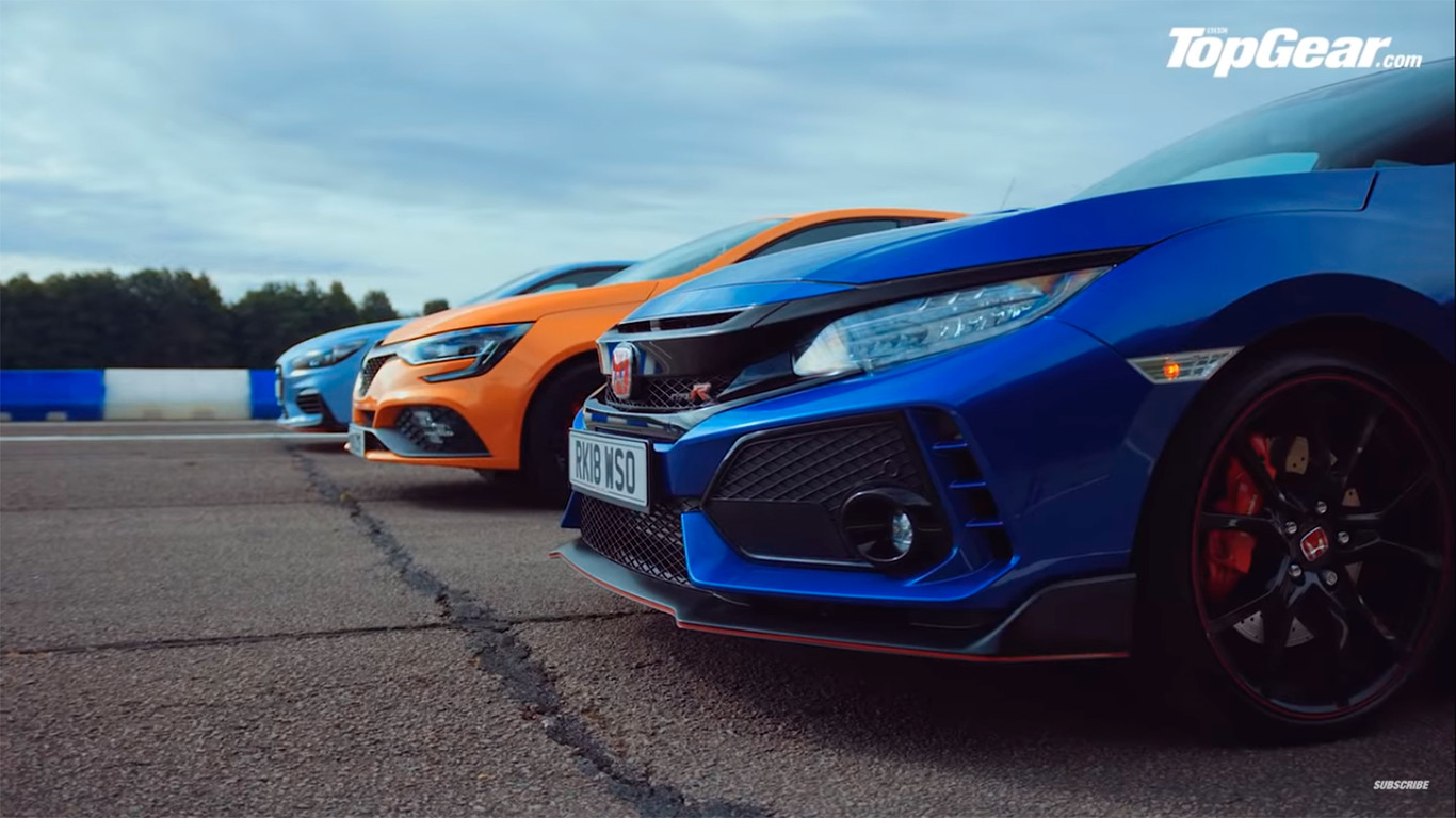 Hay muchas similitudes entre el Honda Civic Type R, el Renault Mégane R.S y el Hyundai i30 N. Los tres son compactos deportivos de tracción delantera y disponen de un propulsor de cuatro cilindros turboalimentado entorno a los 300 CV. También se mueven en un rango de peso similar (unos 1.400 kilos) y sus prestaciones oficiales son muy parejas. Así que los chicos de Top Gear han decidido enfrentar a los tres en un drag para ver quién sale ganando y el resultado lo tenemos en este vídeo.