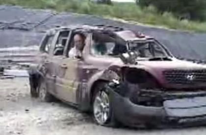 Al lado de lo que le hizo Jeremy Clarkson a una Toyota Hilux, esta muestra de crueldad extrema sobre un Hyundai Terracan que hacen en el programa MoonTv se queda a la altura del betún, pero aún así impresiona.