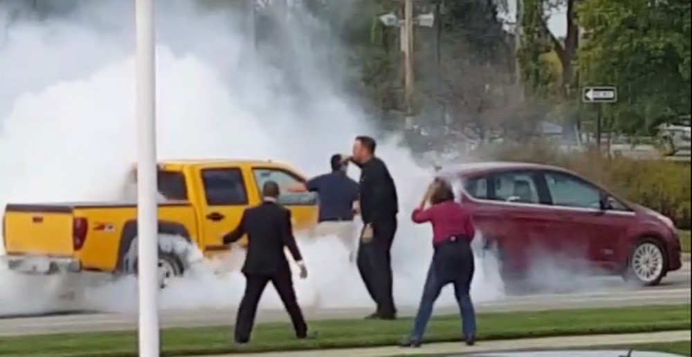 Para más señas, el incidente, que como vemos se saldó sin grandes males para lo que podía haber sido, ocurrió junto al concesionario Suburban Chevrolet Cadillac, cuya página en Facebook muestra, desde el 15 de octubre del año pasado, esta recomendación: