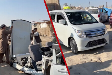 Los modelos más asequibles o accidentados son troceados, así caben más en un contenedor, y son enviados al otro del mundo, como a Pakistán o Afganistán, donde se vuelven a remontar para dejarlos como nuevos, o casi. Soldando y pintando el coche al aire libre son capaces de reconstruir un Suzuki y dejarlo como nuevo. O casi.