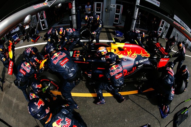 La categoría reina del motor es la que permite mayor número de mecánicos en cada pit-stop: un total de 21 operarios se reparten las tareas para conseguir que la parada se realice en entre dos y cuatro segundos, perdiendo así el menor tiempo posible fuera de la liza. Recordemos que la actual normativa únicamente permite cambiar los neumáticos y no repostar como hace unos años.