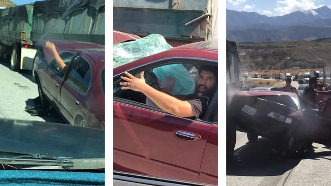 Ocurrió el miércoles en el Condado de San Bernardino (California, Estados Unidos), más concretamente en El Puerto del Cajón, un puerto de montaña de 1.151 metros de altitud que se halla entre la sierra de San Bernardino y la sierra de San Gabriel. Un tren de carretera que transportaba productos de Grimmway Farms atrapó y arrastró a un Nissan Maxima hasta que el conductor de un tercer vehículo obligó al camionero a detenerse.