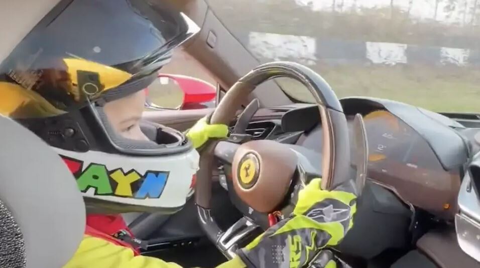 Si no fuera por la sillita infantil o por las extensiones de los pedales que ha puesto su padre en el Ferrari, Zayn ni siquiera llegaría al volante. Pero la soltura con la que el niño maneja el SF90 y traza las curvas es sorprendente. Muchos a su edad nos conformábamos con los 'Micro Machines'.