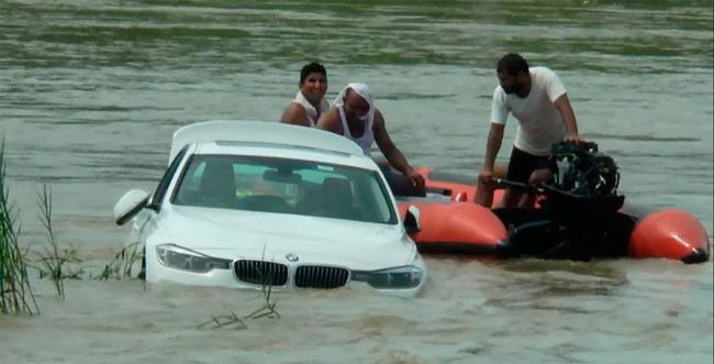 Mientras que en el vídeo grabado por Akash sólo se ve como el coche entra en el río, este vídeo publicado por Uttarakhand Post retrata a varias personas intentando rescatar a la berlina germana, con la ayuda de una grúa, sin éxito alguno. El Serie 3 primeramente quedaba varado, para después sumergirse sin piedad bajo las aguas, ante la atenta mirada de no pocos espectadores que no daban crédito a lo que veían.