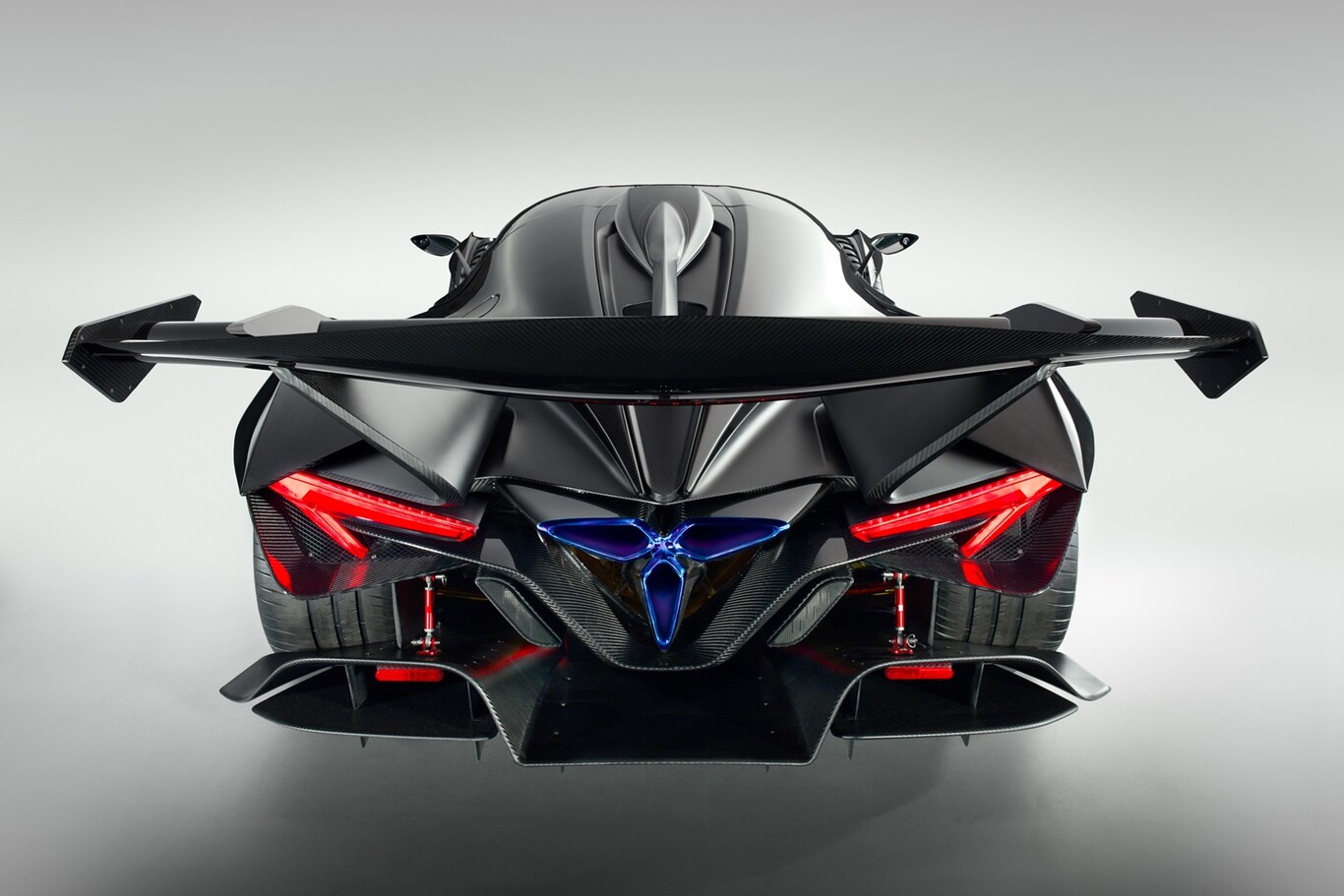 Su estética está tan condicionada por la aerodinámica como por la agresividad. Porque sí, hay muchos elementos para mantener este superdeportivo pegado al suelo con más de 1.300 kg de carga aerodinámica, pero también hay algunas florituras de esa que les gustan a los adinerados excéntricos, como la salida triple de escape de formas puntiagudas.