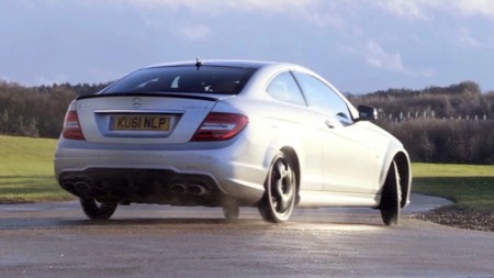 Chris Harris, el conocido periodista británico de la revista EVO (ex autocar) se pone al volante de un Mercedes-Benz C 63 AMG Coupé en el claustrofóbico circuito de Millbrook, un trazado muy estrecho que pone a prueba el comportamiento del vehículo.