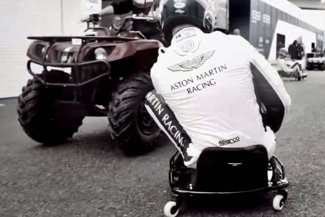 La escuadra de dos coches pilotados por Thiim, Sorensen, Turner, Stanaway, Rees y Adam, han cambiado el volante de sus Aston Martin V8 Vantage GTE por el de unos Razor Crazy Cart XL y se han puesto a hacer diabluras por el circuito de la Sarthe. Gracias a ellos podemos ver cómo hay otra cara de la carrera de resistencia más prestigiosa del mundo.