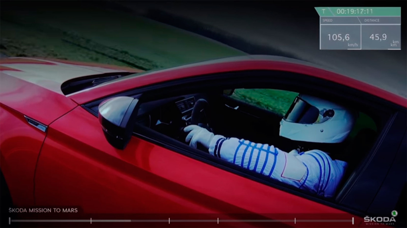 Da la casualidad que en Francia hay hasta tres pueblos que se llaman Mars. A los creativos de la marca de nuestro país vecino se les debió encender la bombilla: ¿qué tal si hacemos nuestro propio "lanzamiento a Marte" para publicitar al más deportivo de los Škoda Superb?