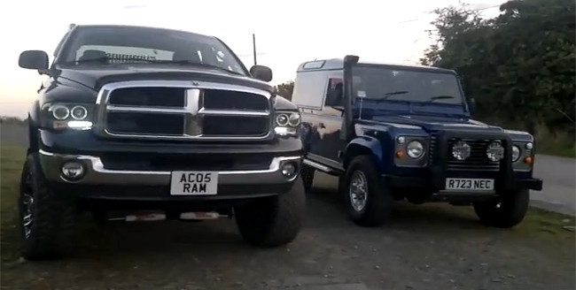 En este caso os traemos un vídeo que parece haber sido grabado en el Reino Unido, en el que se enfrentan dos modelos muy diferentes. Por un lado un representante europeo en forma de Land Rover Defender con motor 3 litros turbodiésel y, por otro, una enorme camioneta pick-up típicamente americana como es una RAM con motor 5.9 litros Cummins, también diésel.