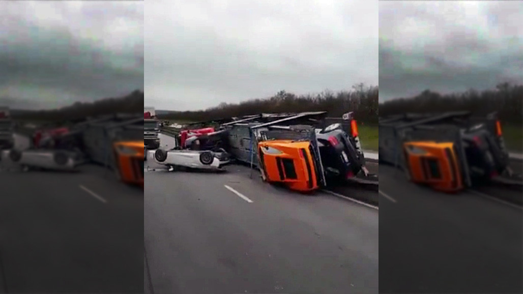 Grabando desde la cabina, el conductor de un Man TGA (con una bocina horrible, por cierto) nos enseña las vistas de un atasco a los alrededores de Paris. ¿El motivo? De un modo desconocido, un camión portacoches sufrió un accidente y terminó volcando de lado sobre el sentido contrario. Lo peor de todo es la mercancía que yace en el suelo, inmóvil. Dolorpasión en estado puro para comenzar la semana.