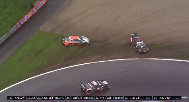 Después de que los dos Mercedes-Benz de Pascal Wehrlein y Robert Wickens adelantaran en el último giro a su piloto Audi, Timo Scheider, Ullrich gritó por la radio "Timo, schieb ihn raus!", lo que viene a decir "Timo, empújales fuera". Escándalo servido, claro, porque el piloto, que asegura que fue un lance de carrera, empujó en la frenada al AMG de Wickens, éste a su vez tocó a su compañero de equipo y ambos acabaron fuera de pista.