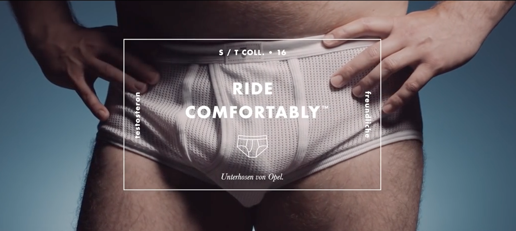 Al parecer, los mercadólogos de Opel encontraron una estrecha relación entre los niveles de testosterona de un hombre y el coche que conduce. Según su último comercial en Dinamarca, conducir deportivos implica estar en posiciones incómodas que pueden reducir los niveles de testosterona, como si se tratara de ropa interior apretada. ¿La solución? Unos gayumbos anchos.