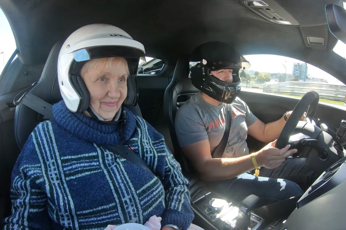 Pero además de las marcas, Nürburgring también es la meca de los aficionados al motor europeos y de casi cualquier parte del mundo, un lugar de culto al que todos soñamos con peregrinar. Más aún si lo podemos compartir con nuestros seres queridos como en este caso en el que un joven ha llevado a su abuela a dar una vuelta al Infierno Verde en su Audi R8, y no lo ha hecho precisamente despacio.