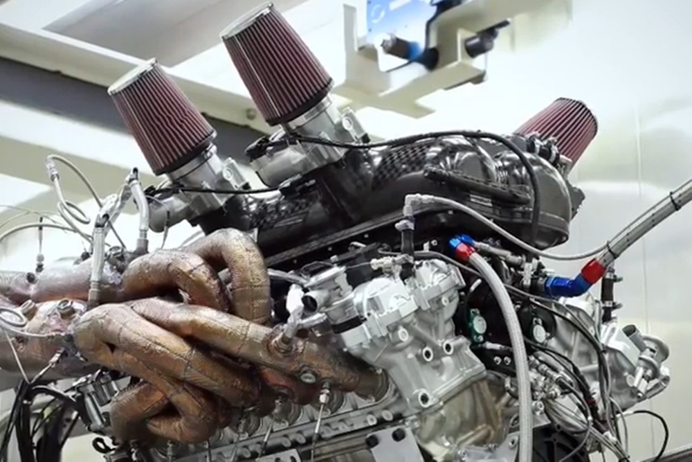 El vídeo publicado en redes sociales nos deja entrever al majestuoso propulsor al desnudo, anclado a un banco de potencia sobre el que se están realizando los primeros test. Unas pruebas que, de momento, sólo nos permiten escuchar al bloque rodando hasta las 1.500 revoluciones. Un aperitivo bastante insulso para un motor que promete llevar su línea roja hasta las 12.100 revoluciones: un giro más rápido que el de los motores de los Aston Martin Valkyrie (11.100 rpm).