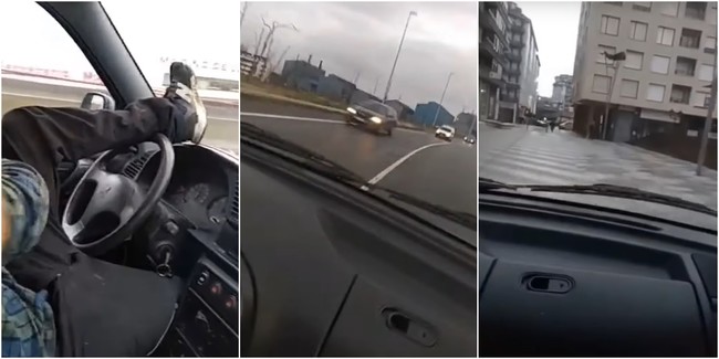 Las imágenes hablan por sí solas, con un repertorio de negligencias bien nutrido. El conductor circula en primer lugar mientras sujeta el volante con una pierna y volcado sobre el pasajero que graba y sin llevar puesto el cinturón de seguridad.