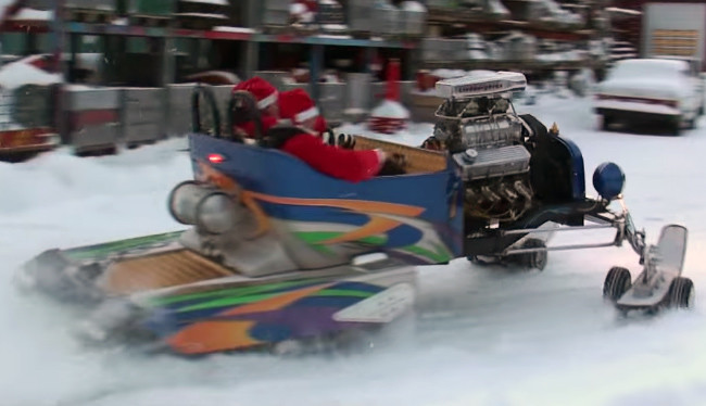 Mañana llega Papá Noel, o Santa Claus como dicen los estadounidenses, pero este año ha dejado los renos en casa y los ha cambiado por un trineo de armas tomar, cuyo único inconveniente es que no es lo más discreto para ir de casa en casa. Se llama SnowMonster, está basado en el chasis de un viejo Volvo Duett y pertenece al equipo sueco de drag Lindberg Bros.
