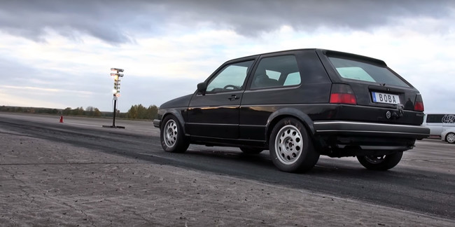 Este Golf II tan particular, que pesa 1.180 kilogramos, despacha el 0 a 100 km/h en 2,53 segundos y el cuarto de milla (0-400 metros) en 8,69 segundos a 273 km/h. Además, pasa de 100 km/h a 200 km/h en únicamente 3,16 segundos, que se dice pronto, e impresiona especialmente que acelere de 200 a 250 km/h en 1,98 segundos y alcance 270 km/h en sólo 1,02 segundos más.