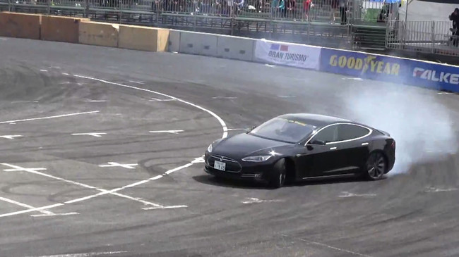 Eso sí, por lo visto a NOB no le acaba de convencer el Tesla Model S para estas cosas, no porque su entrega de par sea lenta precisamente, que con los 600 Nm que se gasta el bicho prácticamente desde 0 hay como para derrapar a voluntad, sino porque según recoge Motor Trend el ángulo de giro de la dirección es demasiado escaso para ir de lado. Pero el muchacho hace lo que puede, y el resultado es el que vemos a continuación: