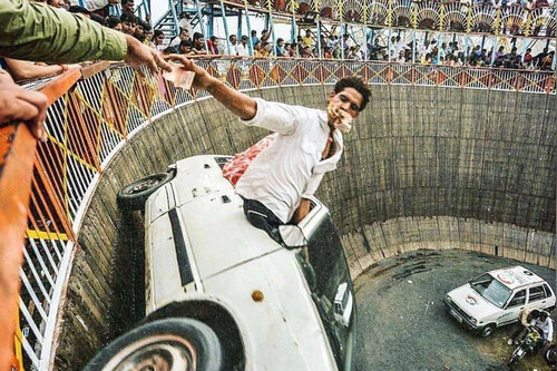 Prácticamente ya no quedan espectáculos de este tipo en EEUU o Reino Unido, pero en la India, hombres y mujeres siguen desafiando las leyes de la gravedad circulando a 60 km/h, en coche o en moto, sobre un muro vertical hecho de tablones de madera. Estos pilotos extremos se sientan en las ventanillas, se agarran varios a la vez o saltan para impresionar al público que asiste a esta tradición de feria por 40 rupias (50 céntimos de euro).