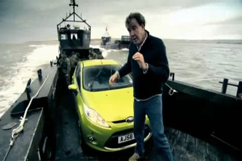En uno de los últimos programas de Top Gay Gear, Jeremy Clarkson se ha apuntado a acompañar a unos infantes de marina británicos en un desembarco anfibio, ya que como el ejército de su majestad anda flojo de fondos, tuvieron que usar un Ford Fiesta haciendo las veces de un APC.