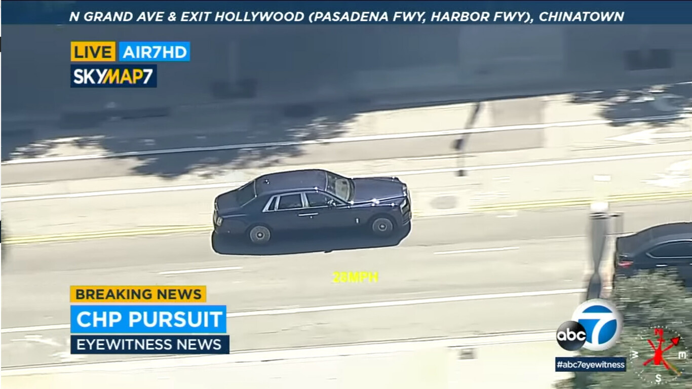 Según señala la propia ABC7, el conductor del Rolls-Royce lo robó el día anterior a la persecución. Como el coche tenía un dispositivo de geolocalización, el dueño compartió la ubicación con la policía y al día siguiente decidieron perseguirlo cuando circulaba por una autopista.