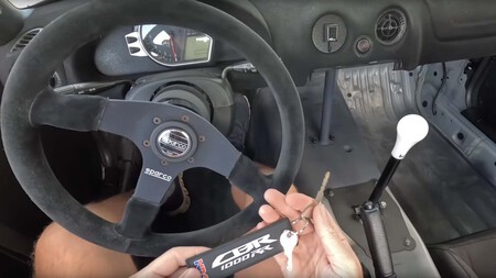 Para que te hagas una idea de lo bestia que es el resultado, este youtuber se pone tapones para conducir su coche. No es que el motor de la CBR sea muchísimo más potente que el del MX-5; con el motor más potente que podía tener el MX-5 NB, un cuatro cilindros atmosférico de 1.8 litros, contaba con 140 CV, así que este “Frankenstein” es solo 40 CV más potente.
