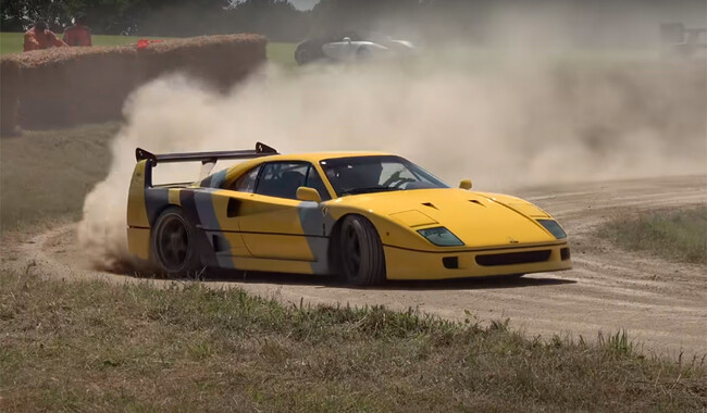 Al final del vídeo que inmortaliza este curioso encuentro, en el que se atisban también un Bugatti Veyron, un Toyota GR Yaris o un Ariel Nomad entre otros, el F40 culmina con unos donuts sobre hierba destrozando el verde sin pudor.