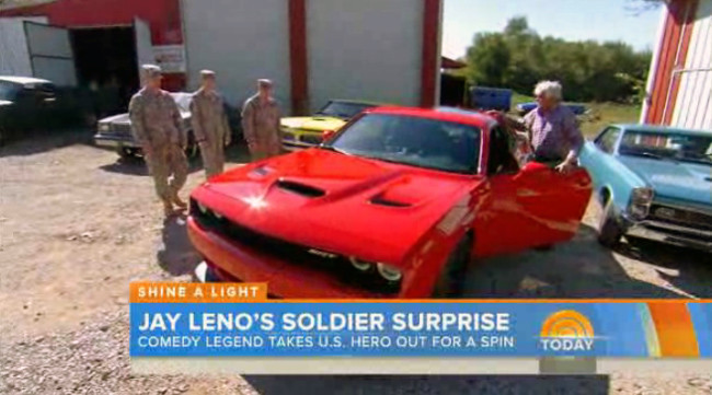 Leberge, también amante de los coches como Leno, sufrió un atentado en Afganistán mientras patrullaba a pie, cuando un terrorista suicida detonó una bomba. En el suceso perdió a dos de sus compañeros y fue seriamente herido. Para hacerle olvidar aquello, Leno le llevó de paseo en un Dodge Challenger SRT Hellcat de 717 CV, pero la cosa no acabó ahí.