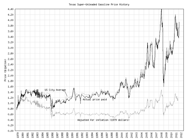 Hasta el año 2004, el precio de la gasolina no había subido de los 2 dólares por galón. Considerando la inflación de los precios y el poder adquisitivo de cada dólar, costaba más del doble llenar un depósito desde 1979, pero eso fue durante un periodo de 30 años. Ahora cuesta el triple.