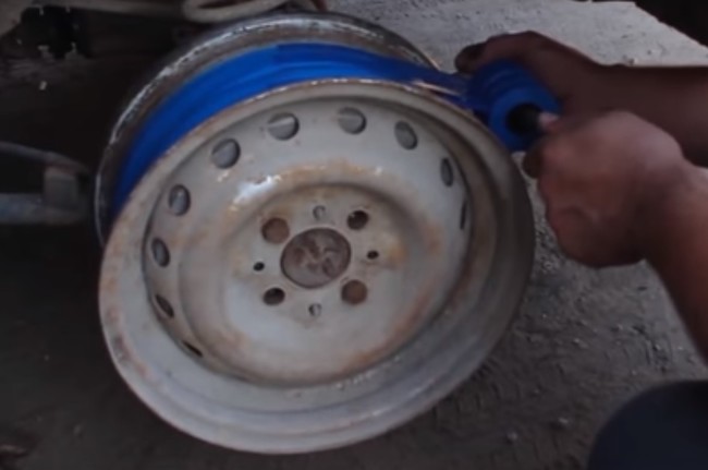 A 15 metros el rollo, la cuenta sale a nueve kilómetros de material aislante. Cuando solo lleva 10 rollos sobre la llanta, el señor ruso afirma con música de vídeo de 'Do It Yourself' de fondo no tener más piel en los dedos. Decide entonces usar su inventiva y utiliza dos rollos a la vez. Va a ser un largo camino.