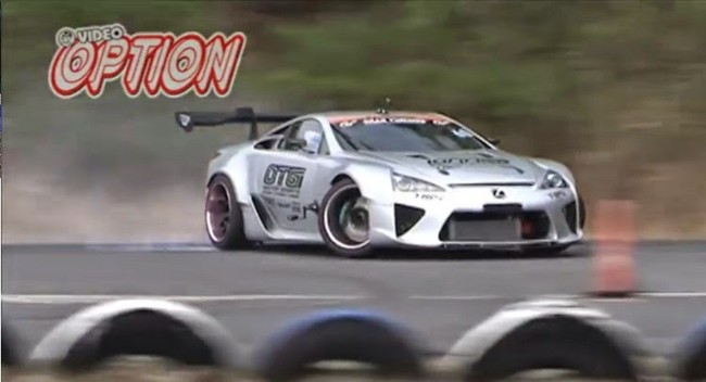 En los dos vídeos que os traemos hoy vais a poder ver este LFA de drift (con preparación D1GP) en acción, achicharrando neumáticos traseros gracias a ese propulsor de la NASCAR, cuyo sonido, si bien es muy bestia, no tiene la dulzura que rezuma el V10. En el primero de los vídeos, el compañero de baile del Lexus es un Toyota Crown, también con preparación D1GP. Disfruta de los vídeos, que son cortos pero intensos.
