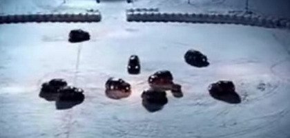 ¿Recordáis el partido de fútbol entre coches? Sobre hielo parece todavía más divertido.
