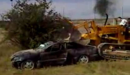 Al más puro estilo Top Gear, se monta su particular destruction derby con un Opel Calibra y un Nissan Micra, acompañados finalmente de una pequeña excavadora con la que da el toque de gracia a esos pobres coches.
