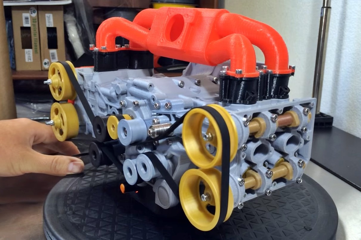 Lo que tenéis a continuación no es un motor Subaru EJ20 WRX real, aunque lo parezca. El propulsor que podéis ver ha sido creado por Eric Harrell y es completamente funcional, las únicas diferencias son que está reproducido a un 35% de la escala real y sus piezas están impresas en plástico. Por lo demás mantiene la estructura bóxer de cuatro cilindros opuestos capaz de hipnotizarnos con el movimiento de sus correas, árboles de levas y pistones.