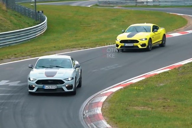 Si bien Ford no anunció en la presentación del Mach 1 cuál sería el destino de este modelo, podemos estar tranquilos porque todo parece apuntar que lo veremos en Europa. Los dos Mustang Mach 1 que han rodado en Nürburgring carecen de la iluminación frontal naranja, los pilotos traseros más claros que usan los Mustang del viejo continente y un paragolpes delantero con alojamiento para la matrícula.