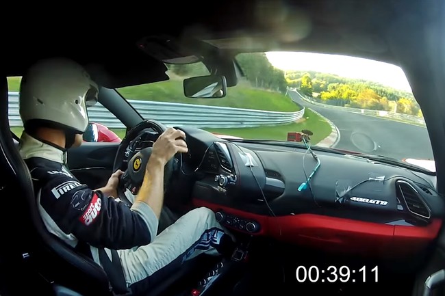 Extrayendo todo el potencial de su ocho cilindros de 3.9 litros turboalimentado, los más de 650 CV del Ferrari 488 GTB han conseguido catapultar al exclusivo deportivo italiano hasta una marca de 7:21.63. ¿No te dice nada? Son más de tres segundos más rápido que un Enzo. Y no ha sido una tarea fácil a tener de las infinitas y constantes correcciones que ha tenido que hacer el piloto Christian Gebhardt.